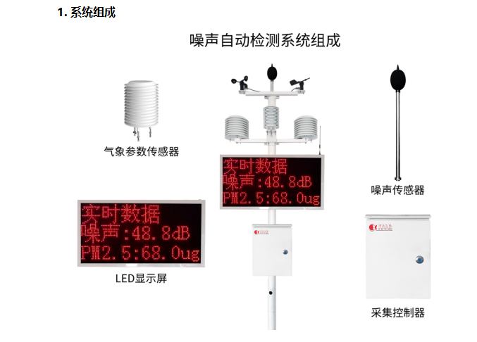 噪聲監(jiān)測子站是環(huán)境噪聲自動(dòng)監(jiān)測系統(tǒng)的戶外采樣部分,包括全天候戶外 傳聲器、采集分析單元、通信單元、電源控制單元以及機(jī)箱等。環(huán)境噪聲自動(dòng)監(jiān)測系統(tǒng)是由噪聲監(jiān)測子站、傳輸網(wǎng)絡(luò)、噪聲監(jiān)控 平臺(tái)等組成的,能實(shí)現(xiàn)噪聲自動(dòng)監(jiān)測并實(shí)時(shí)進(jìn)行噪聲數(shù)據(jù)統(tǒng)計(jì)分析的系統(tǒng)。噪 聲監(jiān)測子站可擴(kuò)展氣象監(jiān)測模塊、車流量監(jiān)測模塊、視頻監(jiān)控模塊、LED 顯示 模塊、語音播報(bào)模塊等。